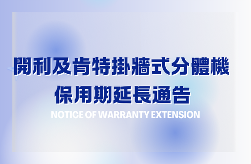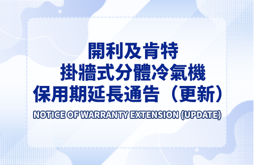有關開利及肯特掛牆式分體冷氣機保用期延長之通告(更新)